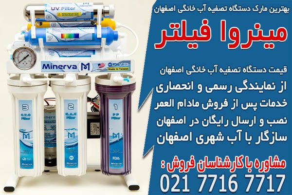 “بهترین مارک دستگاه تصفیه آب خانگی در شهر اصفهان با توجه به کیفیت قطعات، خدمات ارزنده پس از فروش و گارانتی طلایی بدون قید و شرط و همچنین جوابدهی اصولی سیستم اسمز معکوس پمپ و مخزن دار برای سختی آب لوله کشی شهری اصفهان، تصفیه آب مینروا تایوان است که انواع مدلهای آن توسط نمایندگی انحصاری مینروا فیلتر به شما عزیزان ساکن شهر اصفهان عرضه میگردد.”